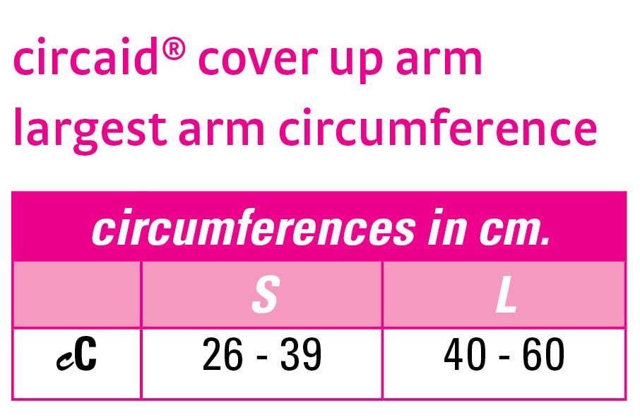 The circaid cover up arm is a smooth sleeve of fabric that can fit over most arm compression garments for a more discreet look. The thin fabric of this product helps prevent damage to clothing and skin from compression garments. Available in two sizes, and colors for a clean finish. To find your size, measure the widest part of your arm with a tape measurer.