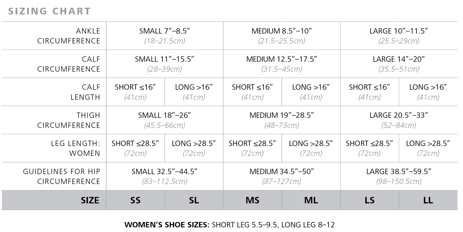 | Contraindications | Severe arterial insufficiency, intermittent claudication, ischemia. Uncontrolled congestive heart failure. Cautions: skin sensitivities or allergies. Advanced neuropathy indicating sensory loss in leg or foot. diabetes with advanced arterial compromise. Confinement to bed or non-ambulatory use unless otherwise prescribed by the physician. Eczema, hypodermatitis, dermatosclerosis, dermatitis (following treatment). |